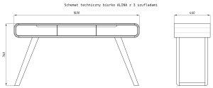 Biurko dębowe o szerokości 160 cm z 3 szufladami ALINA to nowoczesne i funkcjonalne biurko, które doskonale sprawdzi się w domu