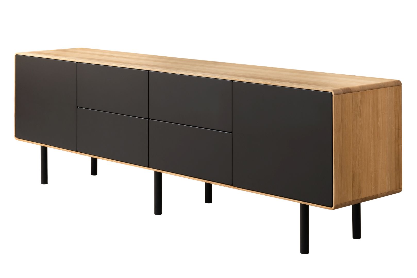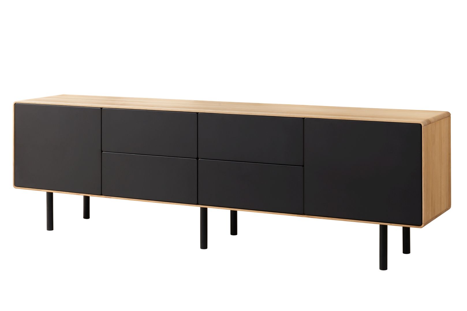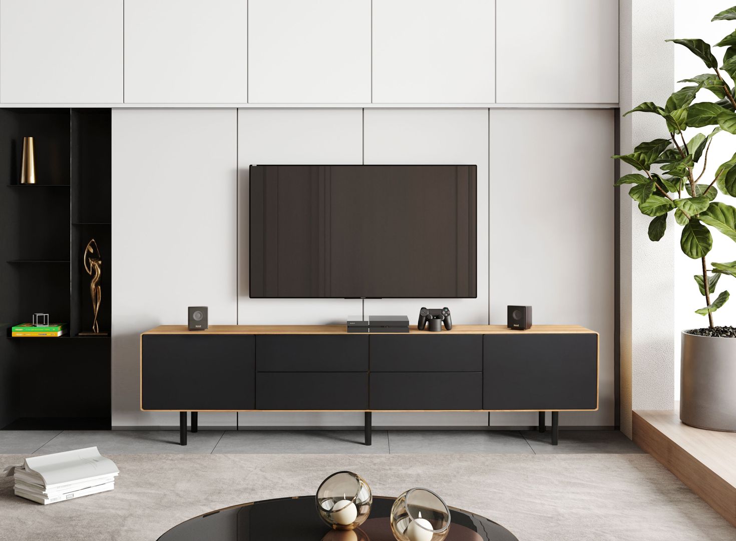Odkryj idealne połączenie naturalnego piękna litego dębu z nowoczesnym, minimalistycznym wzornictwem. Komoda RTV z kolekcji B&W (Black & White), model TV 2 4.2.4, to mebel stworzony dla miłośników prostoty, elegancji i inteligentnych rozwiązań. Jej ponadczasowy design, oparty na kontraście ciepłego drewna i gładkich, matowych frontów w czerni lub bieli, stanie się centralnym punktem Twojego salonu i doskonałą bazą pod telewizor oraz sprzęt multimedialny.