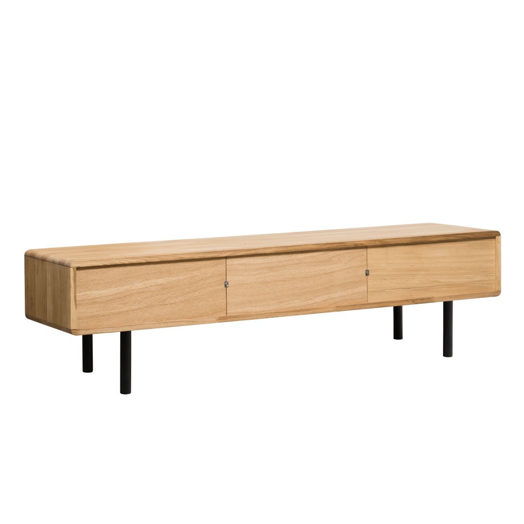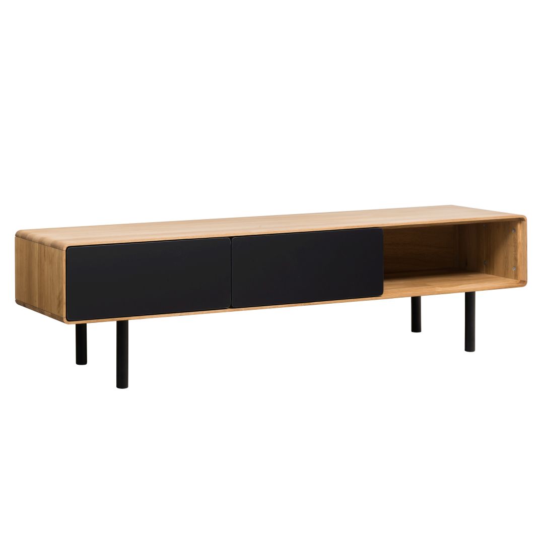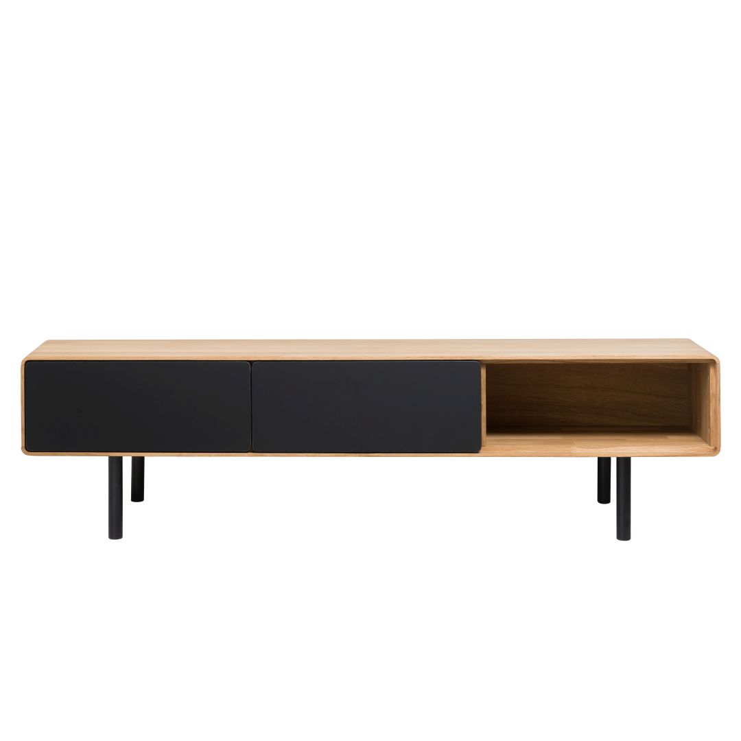 Połączenie litego dębu z nowoczesnym designem, który dopasujesz do siebie. Ten model oferuje unikalny, asymetryczny układ z dwiema szufladami i otwartą wnęką, zapewniając idealny balans między przechowywaniem a ekspozycją sprzętu RTV.