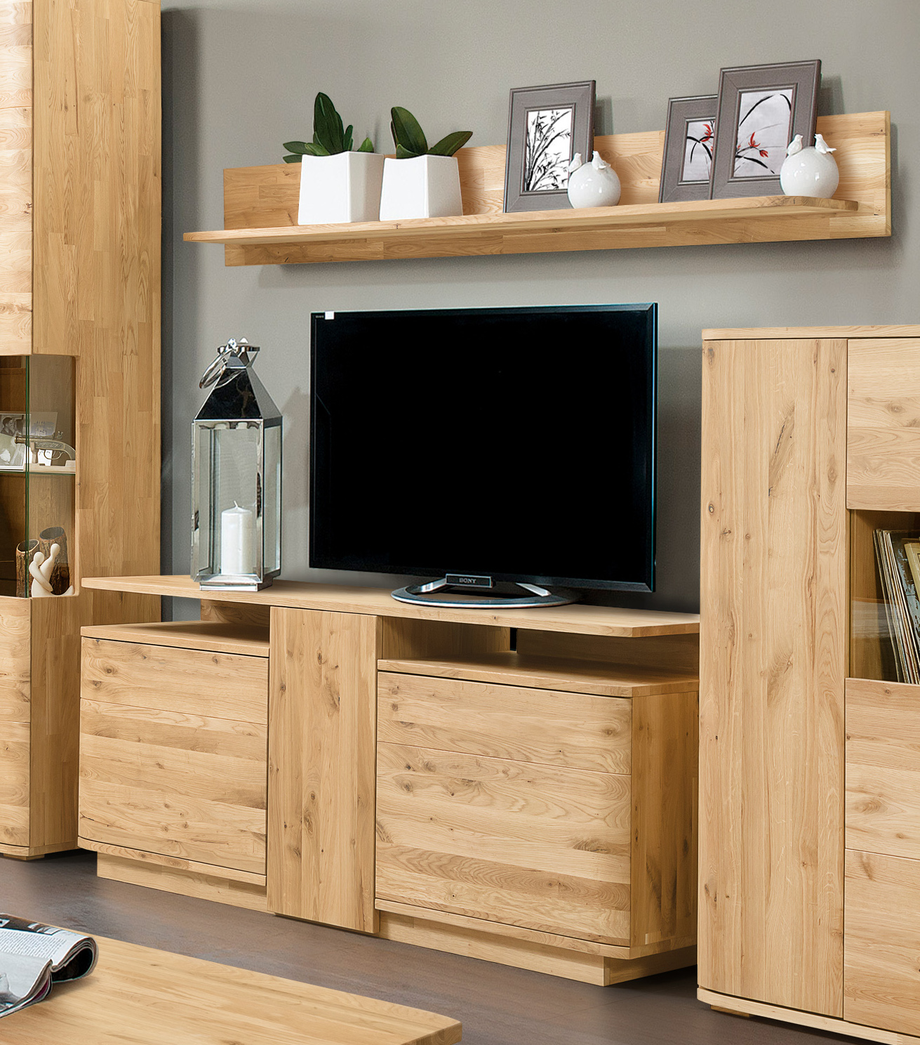 Komoda RTV z litego dębu zapewnia wystarczającą ilość miejsca na przechowywanie akcesoriów, kabli i innych drobiazgów, pomagając utrzymać porządek wokół sprzętu RTV.