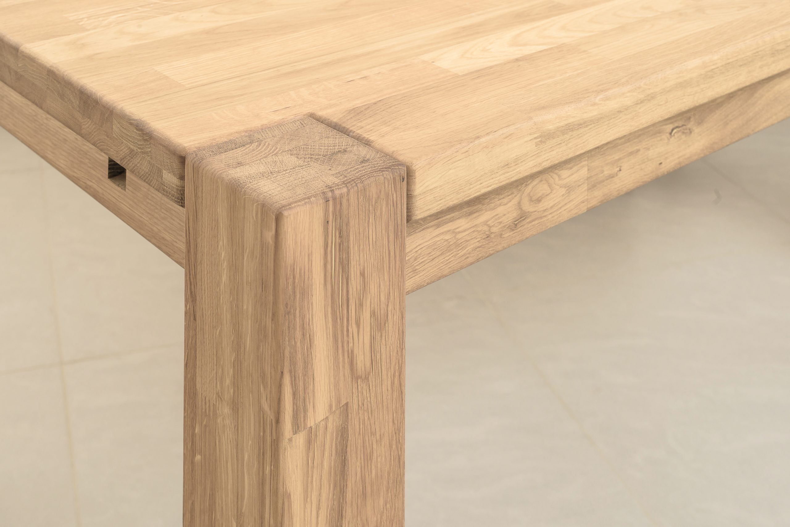 Stół z litego drewna dębowego z blatem o grubości 2 cm, pogrubianym na brzegach do 4 cm