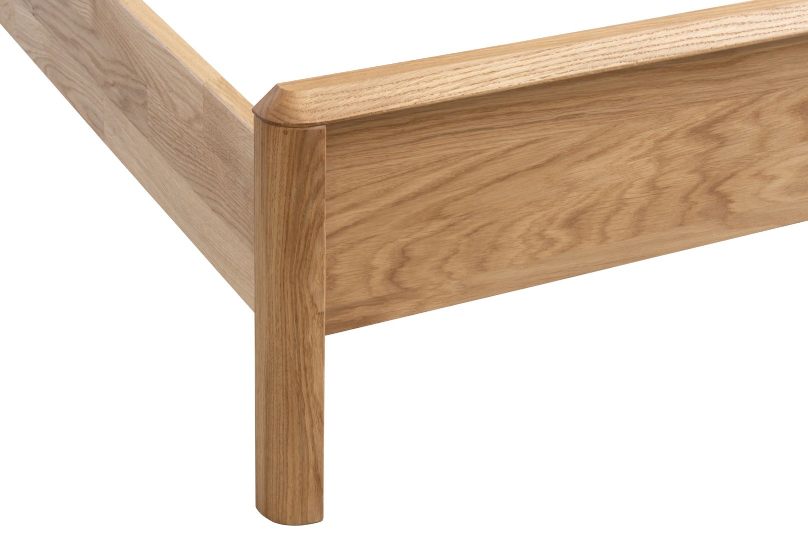 Łóżko w całości wykonane zostało z litego drewna dębowego, szlachetnego materiału cenionego za wyjątkową trwałość i niepowtarzalne usłojenie. Każdy egzemplarz jest unikatowy, a widoczna struktura drewna wprowadza do wnętrza ciepłą, przytulną atmosferę. Naturalne wykończenie podkreśla jego autentyczny charakter, jednocześnie zabezpieczając powierzchnię na lata.