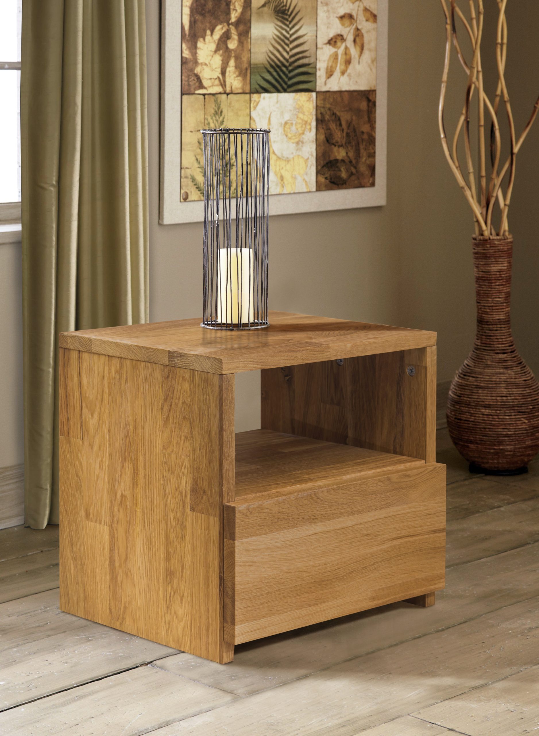 Wąska szafka nocna dębowa z jedną szufladąWąska szafka nocna dębowa z jedną szufladą